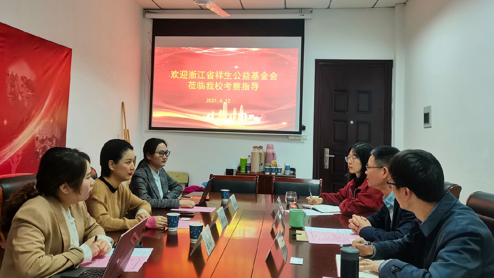4月12日,浙江省祥生公益基金会秘书长姚林女一行来访我校。我校教育基金会理事长赵敏祥出席座谈交流,基金会秘书处相关人员参与活动。