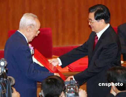 1月9日上午,2008年度国家科学技术奖励大会在北京人民大会堂隆重举行。我校校友、中国科学院院士徐光宪获2008年国家最高科学技术奖。中共中央总书记、国家主席、中央军委主席胡锦涛为徐光宪颁发奖励证书。