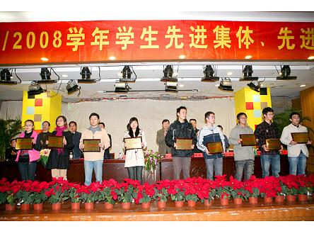 12月19日,学校举行2007/2008学年学生先进集体、先进个人表彰大会。党委副书记何智蕴出席大会并讲话,学校办公室、党委组织部、党委宣传部、党委学工部、党委研工部、教务处、科研处和团委等有关部门负