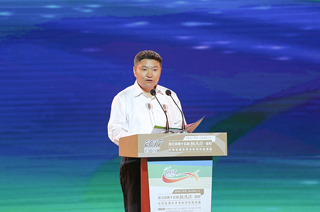 朱林森介绍本届“挑战杯”竞赛相关情况。他指出,“挑战杯”大学生学术竞赛经过28年的发展,逐渐成为覆盖面广、赛制齐全的综合性大学科技系列竞赛。在本届比赛中,我省青年学子充分发挥自身专业优势,结合所思所学,激情飞扬,竞显风采,充分展现了当代大学生勇于挑战、敢于突破的学术创造热情,体现出当代浙江学子卓越的创业创新实力。并承诺全省各级团组织将把竭诚服务青年作为一切工作的出发点和落脚点,为大学生和广大青年创新创业添砖加瓦、保驾护航;倡议全省广大青年学子要敢于有梦、勇于追梦、勤于圆梦,在心中播撒创业创新的火种,用创新描绘人生,用创业书写青春,踊跃投身“四个全面”战略布局在浙江的生动实践,朝着浙江高水平全面建成小康社会的宏伟目标不忘初心,继续前进。