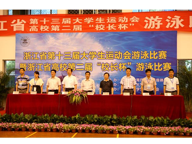6月9日至12日,省第十三届大学生运动会游泳比赛暨省高校第二届“校长杯”游泳比赛在我校朝晖校区举行,来自全省高校的37支代表队、451名运动员及22所高校的43名校领导参加了本次比赛。省教育厅副厅长、
