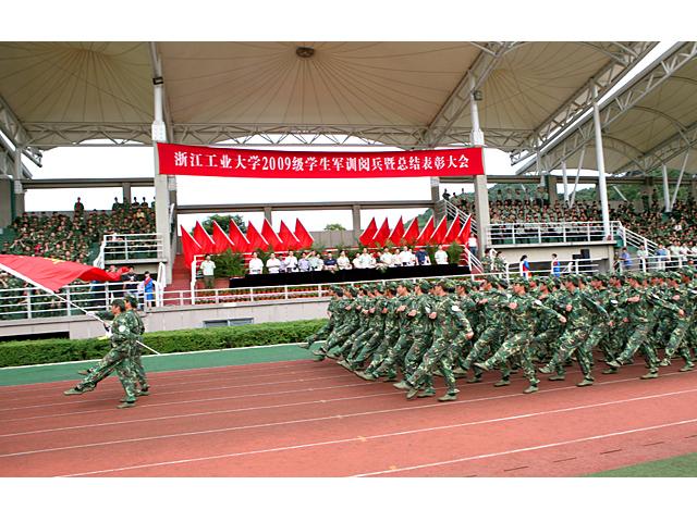 7月25日上午,我校分别在屏峰校区和之江校区举行了2009级学生军训阅兵暨总结表彰大会。军训师政委、校党委副书记何智蕴、副校长马淳安检阅了参训学生。军训师副政委张辉中校,驻训官兵,学校相关部门、体军部