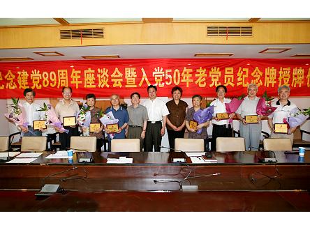 学校举行纪念建党89周年座谈会暨入党50年老党员纪念牌授牌仪式