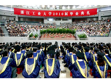 6月26日上午,学校在屏峰校区体育馆隆重举行了2010届本科生、研究生毕业典礼。校党政领导汪晓村、张立彬、沈传缘、肖瑞峰、卢章陆、盛颂恩、李小年和张志军出席典礼并为优秀毕业生颁奖。全体6000余名20