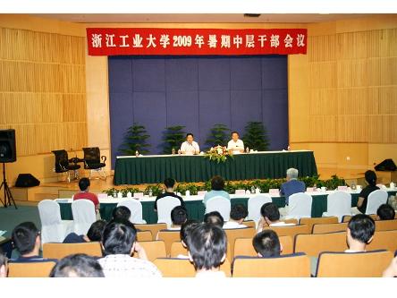 浙江省政府和教育部共建浙江工业大学协议的签署,标志着我校的发展跃上了一个新的更高的平台。8月18日至21日,学校召开2009年暑期中层干部会议,专题研究如何以省部共建为契机,以新一轮改革为动力,以“有